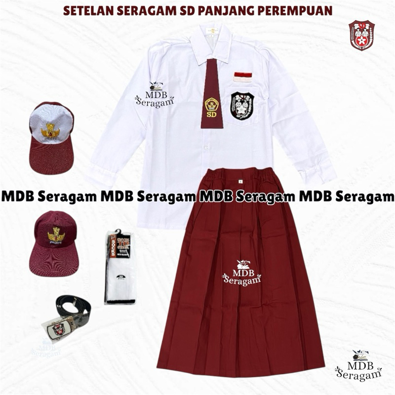 Setelan Seragam Sd Perempuan Baju Panjang Rok Merah Panjang Untuk Perempuan
