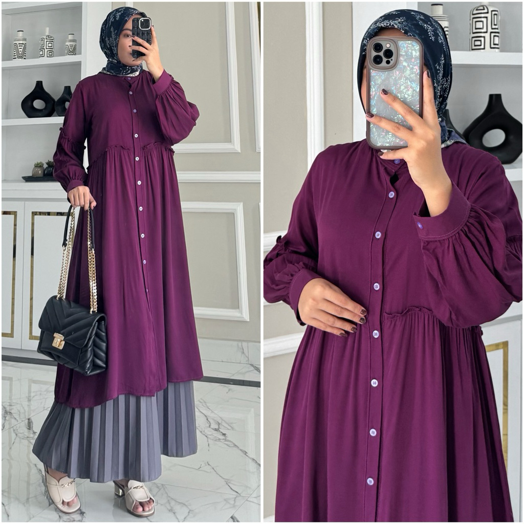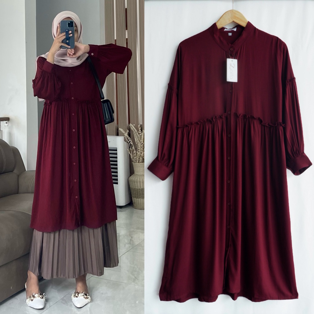 Anggun Tunik By Zalfa Outfit / Baju Atasan Wanita Muslim Tunik Basic Polos Rayon Twill Premium Lengan Panjang