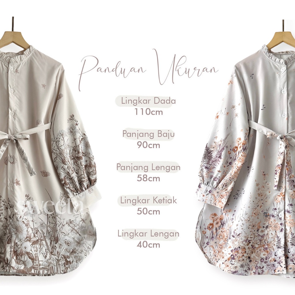 Sweeta | Tunik Kancing Ikat Ruffle Motif Flower | Ld 110 Cm | Cotton Silk | Korea Style | Kancing Dapat Dibuka | Atasan Pakaian Wanita Muslim | Tangan Kancing
