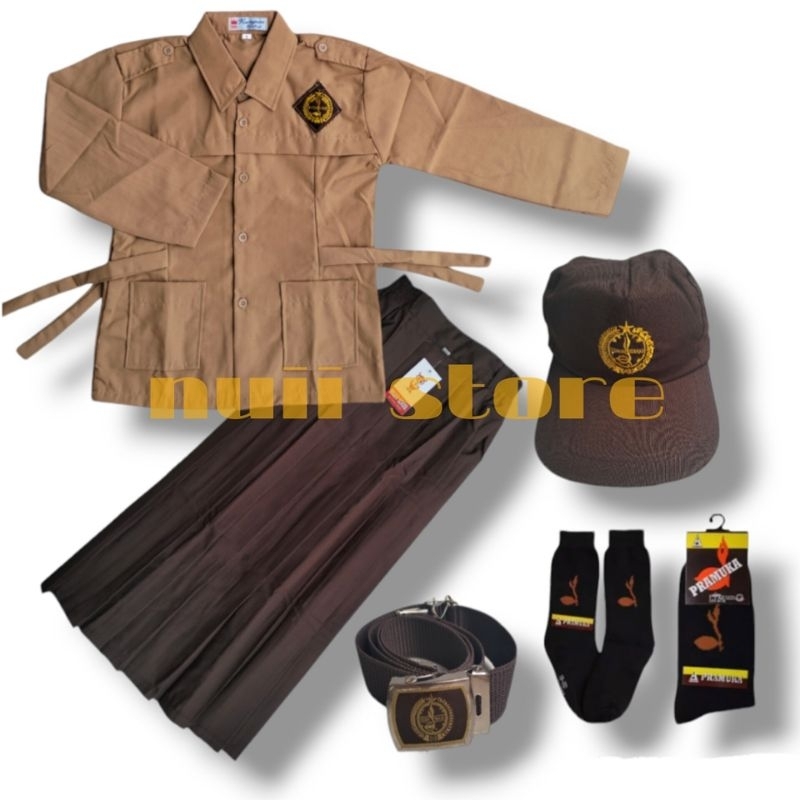 Setelan Seragam Sd Baju Pramuka Lengan Panjang Tali Anak Perempuan Dan Rok Rempel Coklat Kelas 1-6