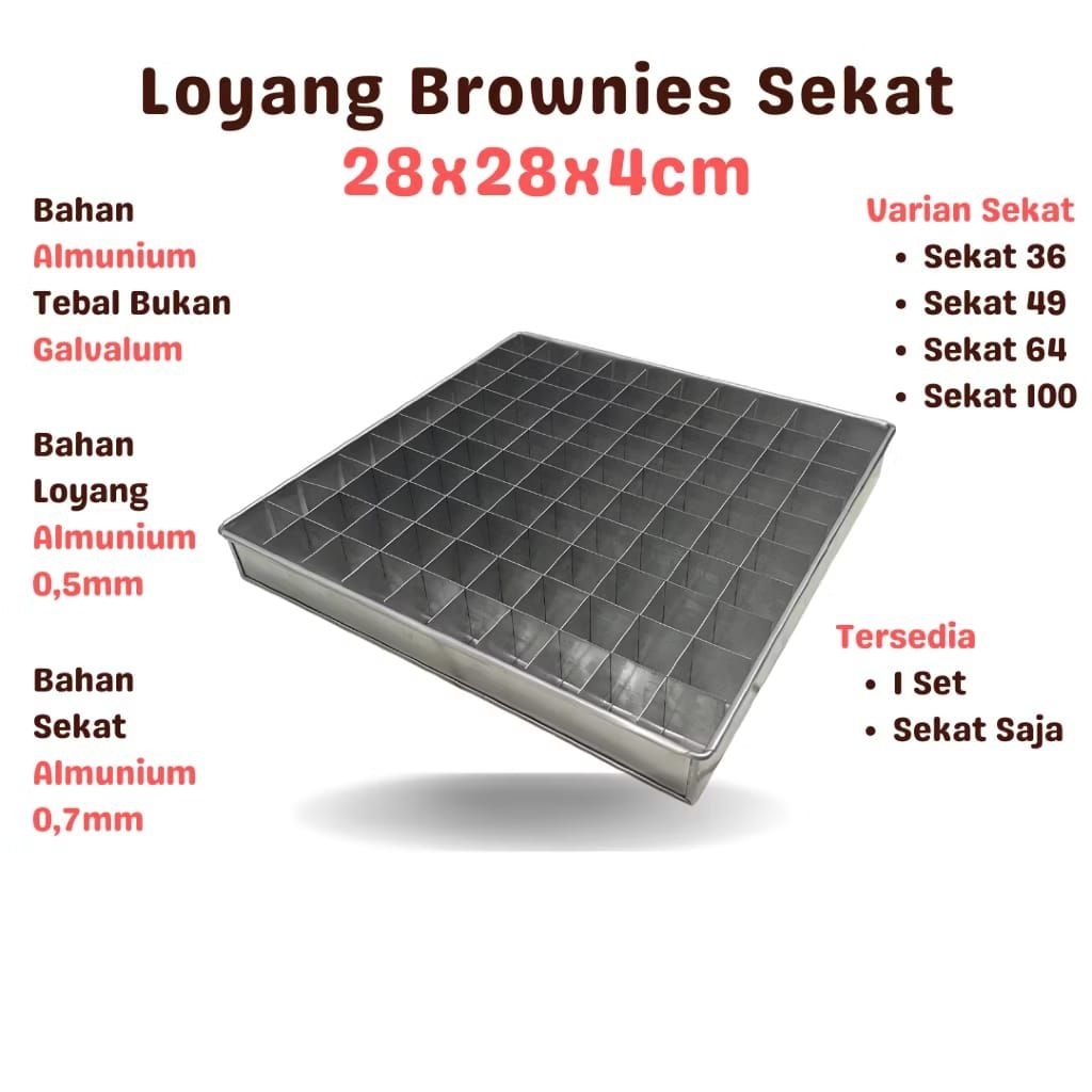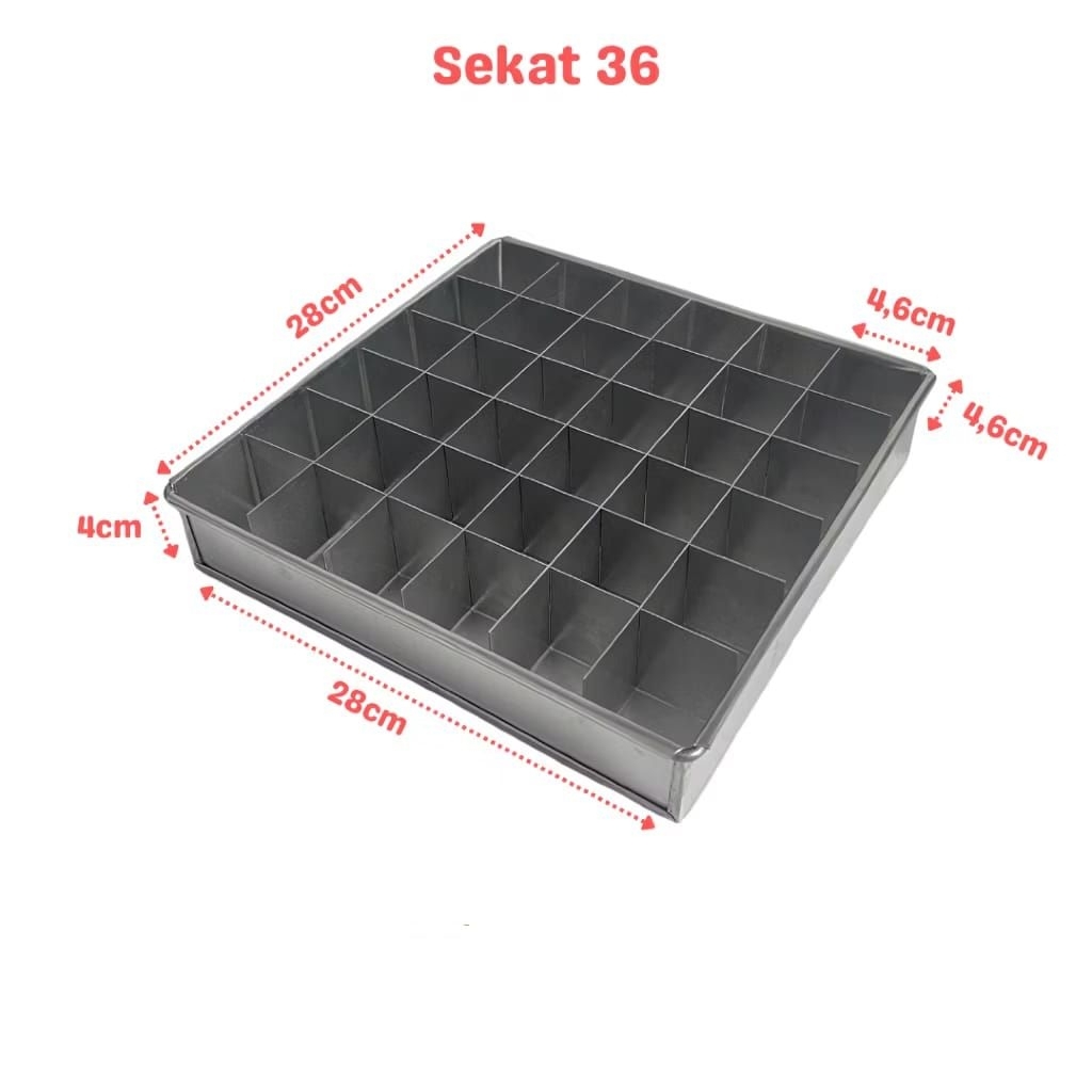 Loyang brownies sekat, loyang kue brownies ukuran 26x26 28x28 30x30 tinggi 4 cm lubang 36 49 64 100 bahan alumunium teba