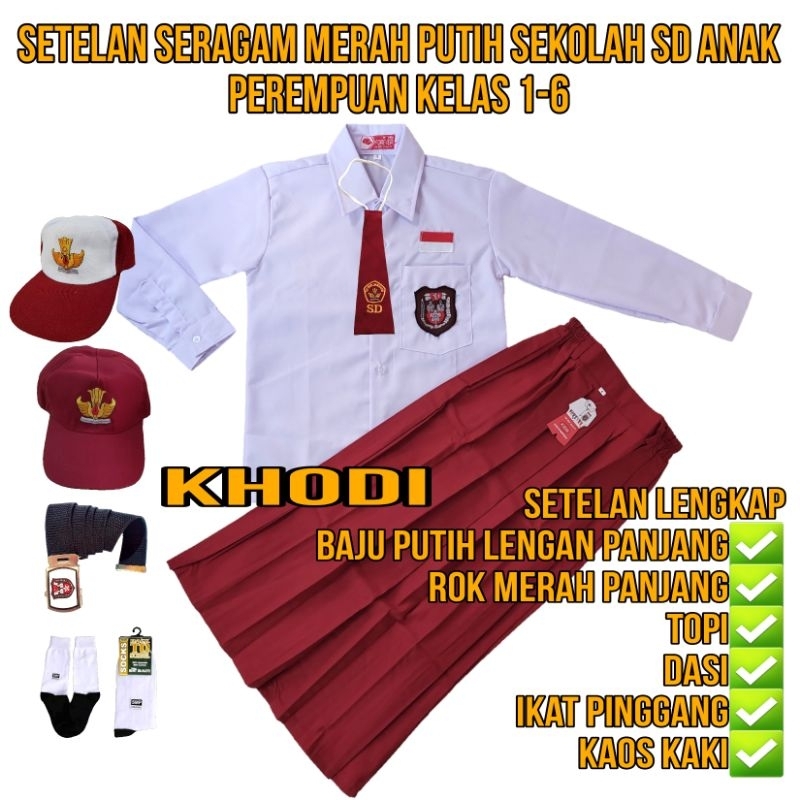 Setelan Seragam Merah Putih Sd Perempuan Lengan Panjang Rok Panjang Merah Pakaian Seragam Sekolah Sd