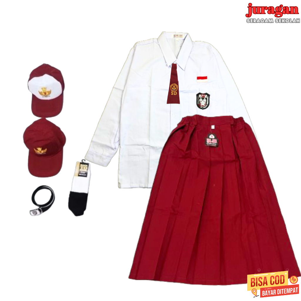 Setelan Super Lengkap Seragam Sekolah Sd Baju Panjang Rok Panjang Perempuan Cewek