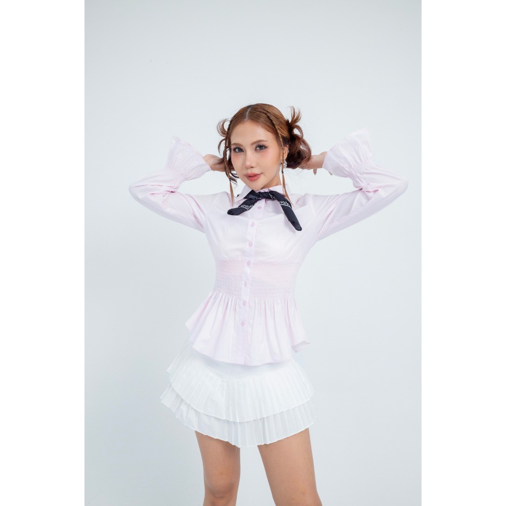 Peachpoppy X Natyashina MOONLIT Kemeja Pinggang Smock & Mini Skirt Pleats- One Set Setelan Terpisah Blouse dan Skirt Kor