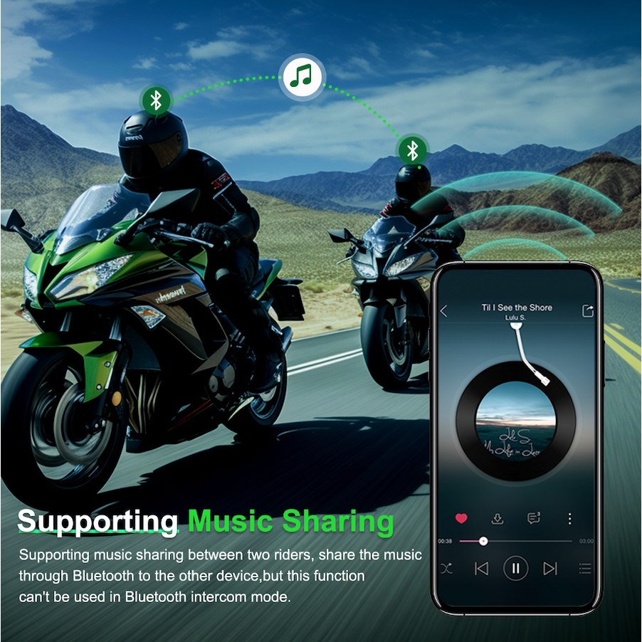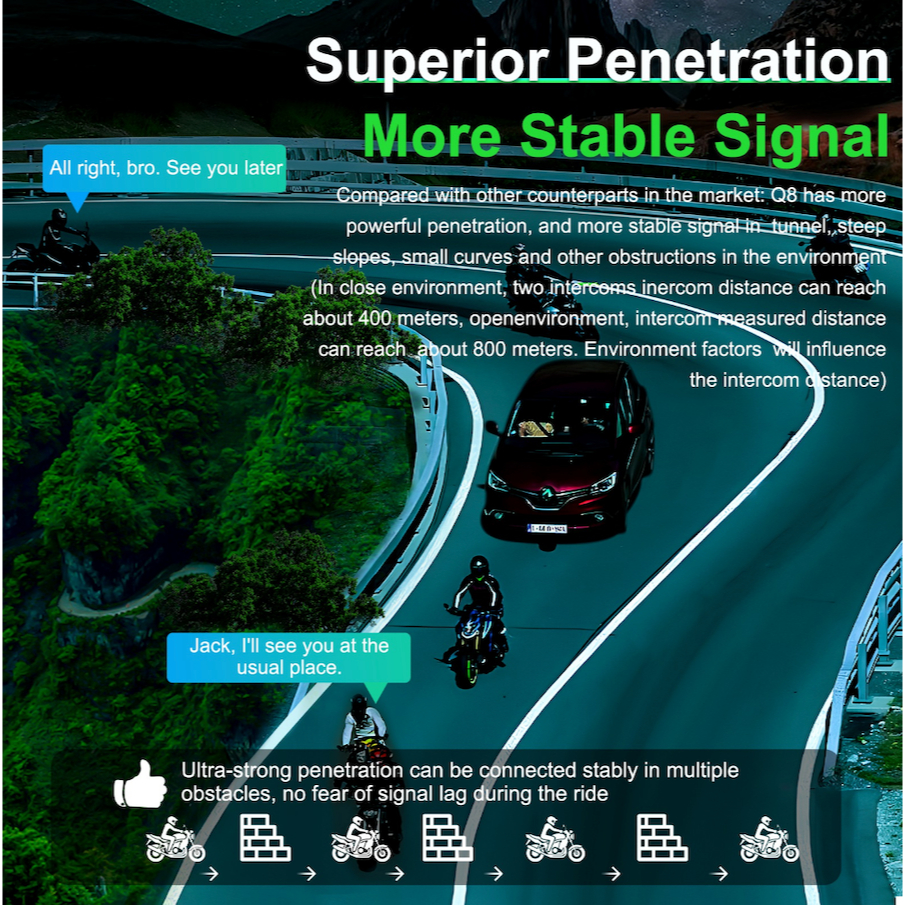 EJEAS Q8 Mesh Intercom Music Sharing Bluetooth Radio FM Helmet Helm Alt MS8 Q7 V6 Pro