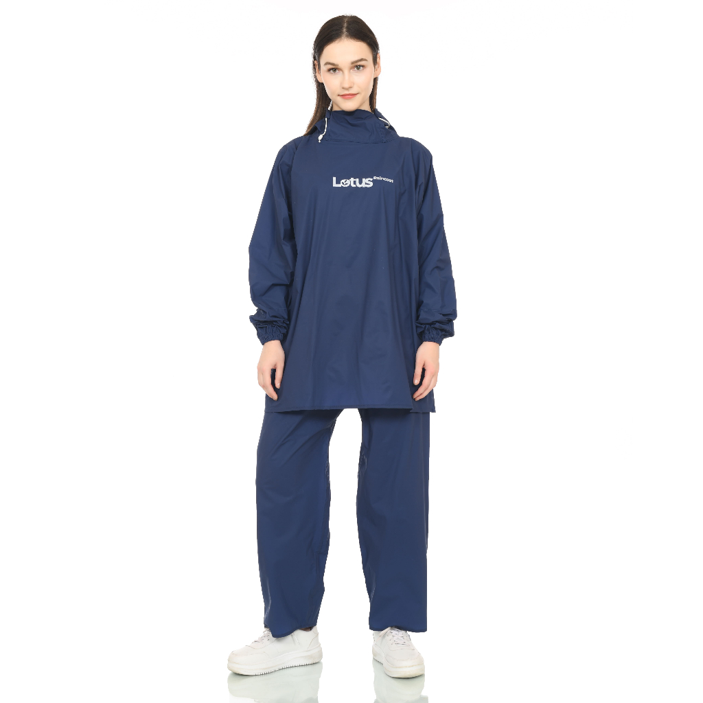 LOTUS Jas Hujan Hoodie Jaket Celana Wanita Pria Dewasa Biru Navy