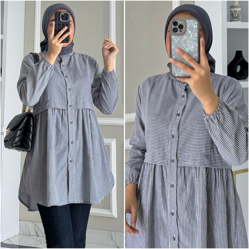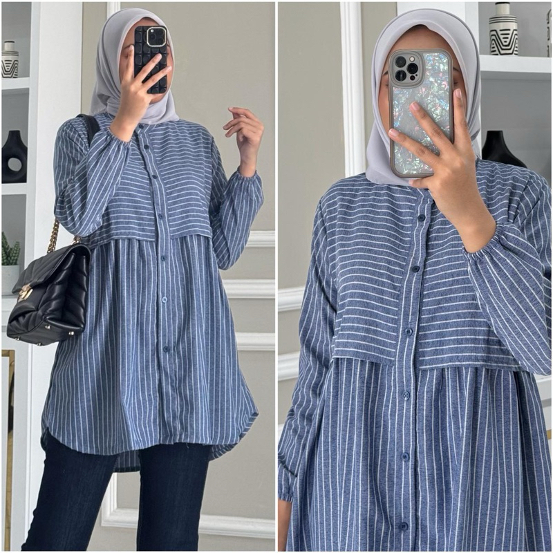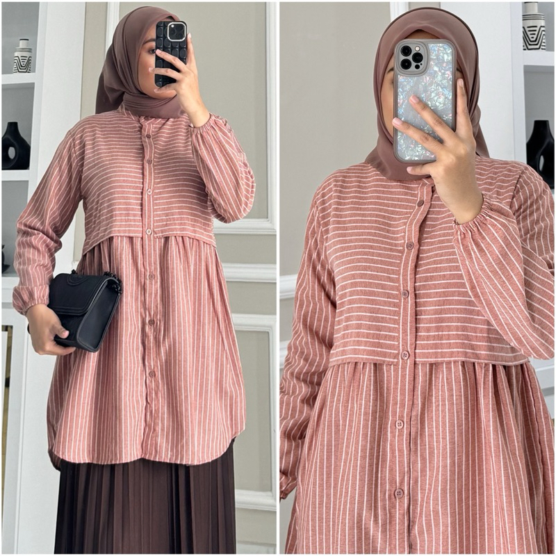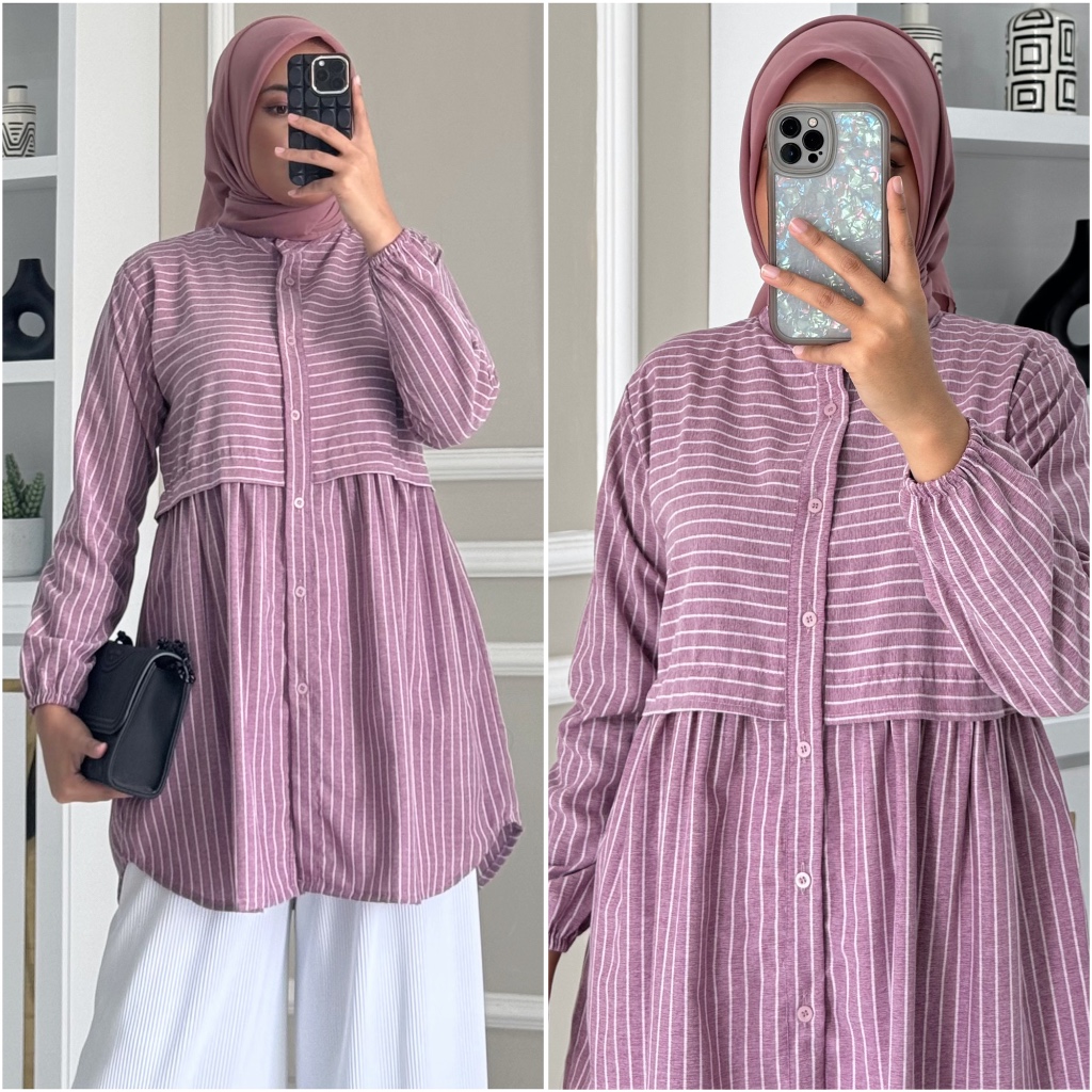 Paula Blouse By Zalfa Outfit / Baju Atasan Wanita Muslim Blouse Kerja Kuliah Basic Motif Katun Poplin Lengan Panjang Karet