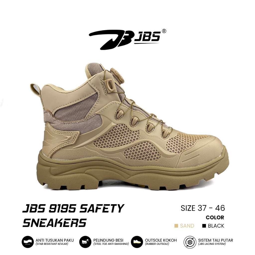 Sepatu JBS 9195 Sepatu Safety Sneakers Tali Putar Pelindung Baja Anti Tusuk Paku Kevlar