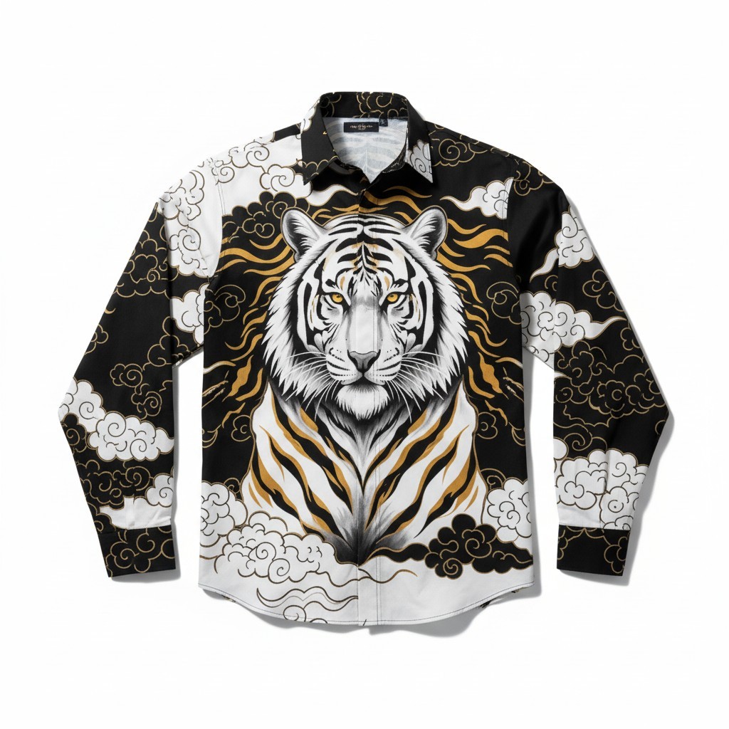 Batik arwinda Tiger White-kuning mengkilap Kemeja batik lengan panjang pakai puring