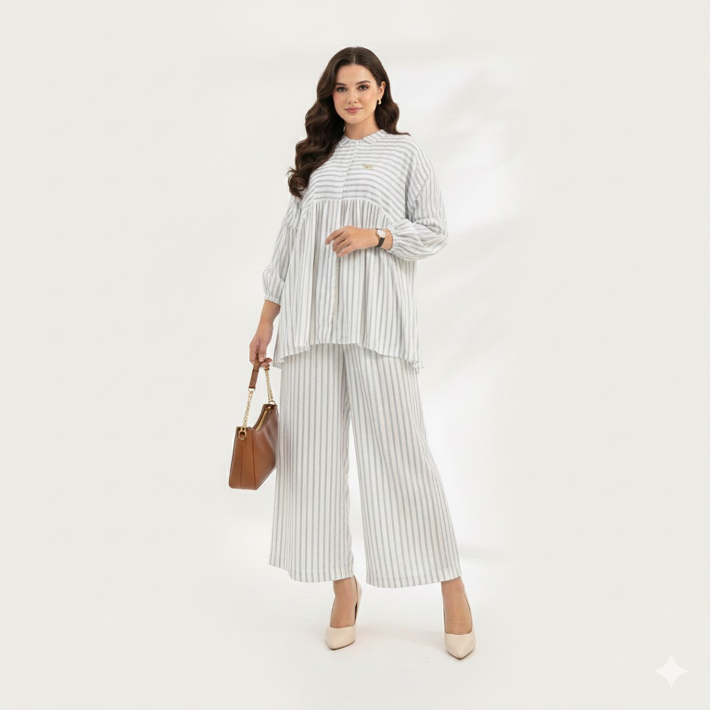 Okedashop - TAVINA SETCEL - Setelan Celana Salur Simple Mewah 2025