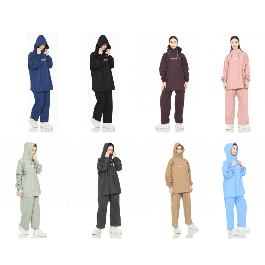 LOTUS Jas Hujan Hoodie Jaket Celana Wanita Pria Dewasa Hijau Army