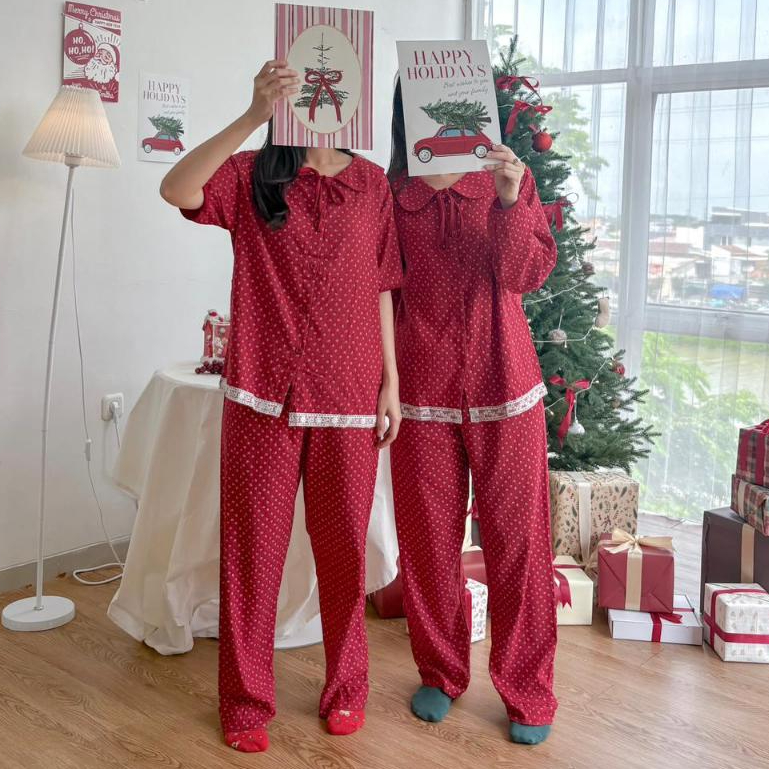Merry Set - Piyama Natal Merah / Baju Tidur / Christmas Collection / Sleepwear / Hampers Kado Natal