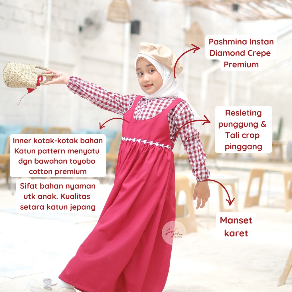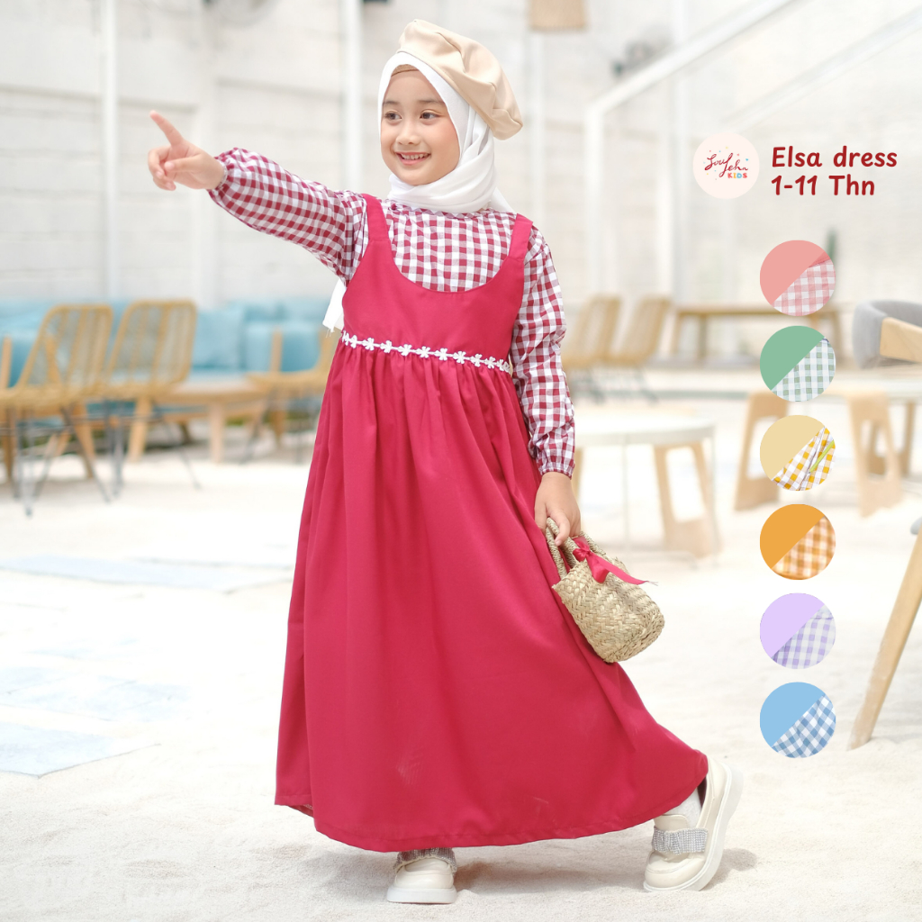 Soulleha Gamis Elsa Baju Muslim Anak Perempuan 1-11 tahun Free Jilbab Instan