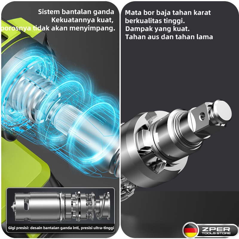 ZPER Bor Impact Multifungsi 21V Mesin Bor Baterai Cordless Listrik Tangan Elektrik