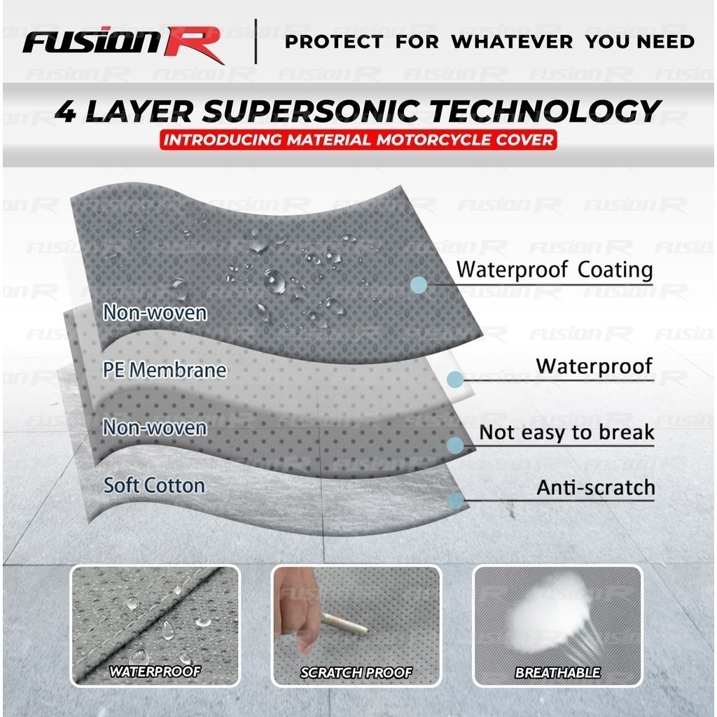 Fusion R Cover Penutup Sarung Motor KAWASAKI NINJA 250 4 Layer Waterproof Pelindung Motor Anti Air Panas UV Protect Outdoor