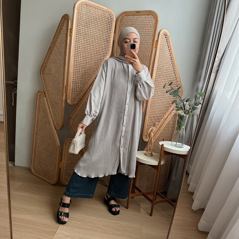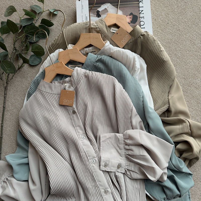 Oclo Plisa Tunic Plisket Mini Polos Casual Wolfis Atasan Tunik Wanita Lengan Panjang Ocl02982