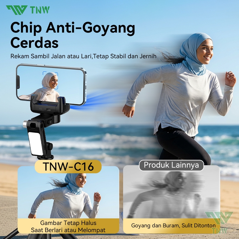 TNW C16 Multi-functional Auto Face Tracking Tripod AI Bluetooth Gimbal Stabilizer 360° Rotation Selfie Stick Tongsis Dengan Lampu