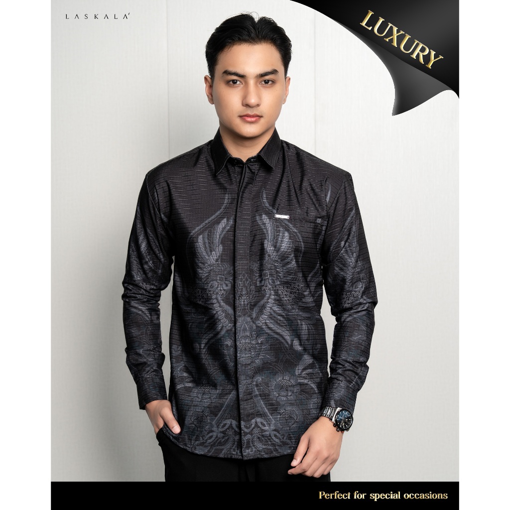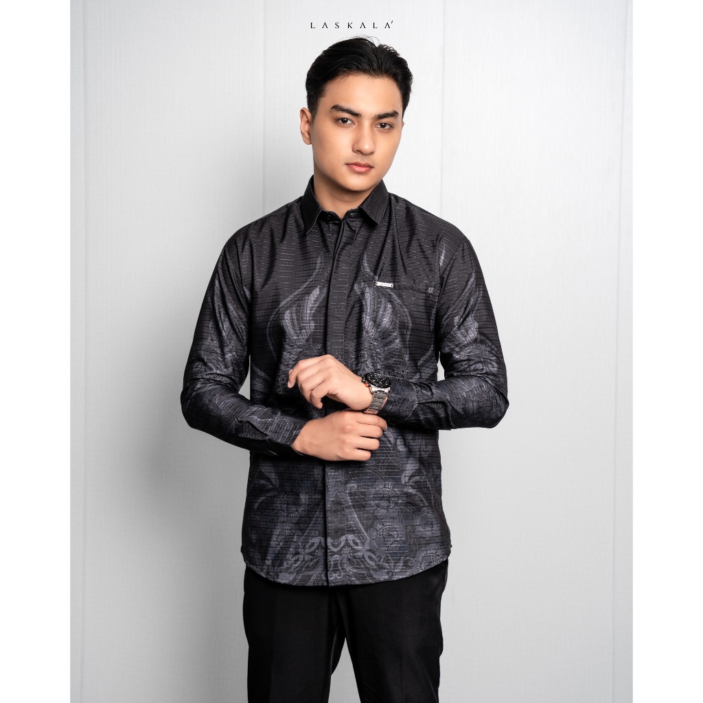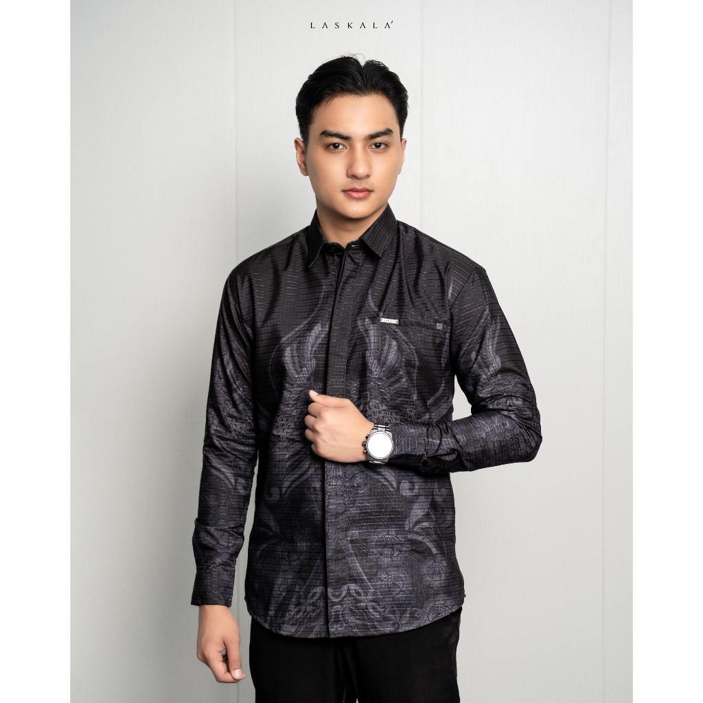 Laskala Batik Premium Prabu Kemeja Batik Pria Slimfit Lengan Panjang