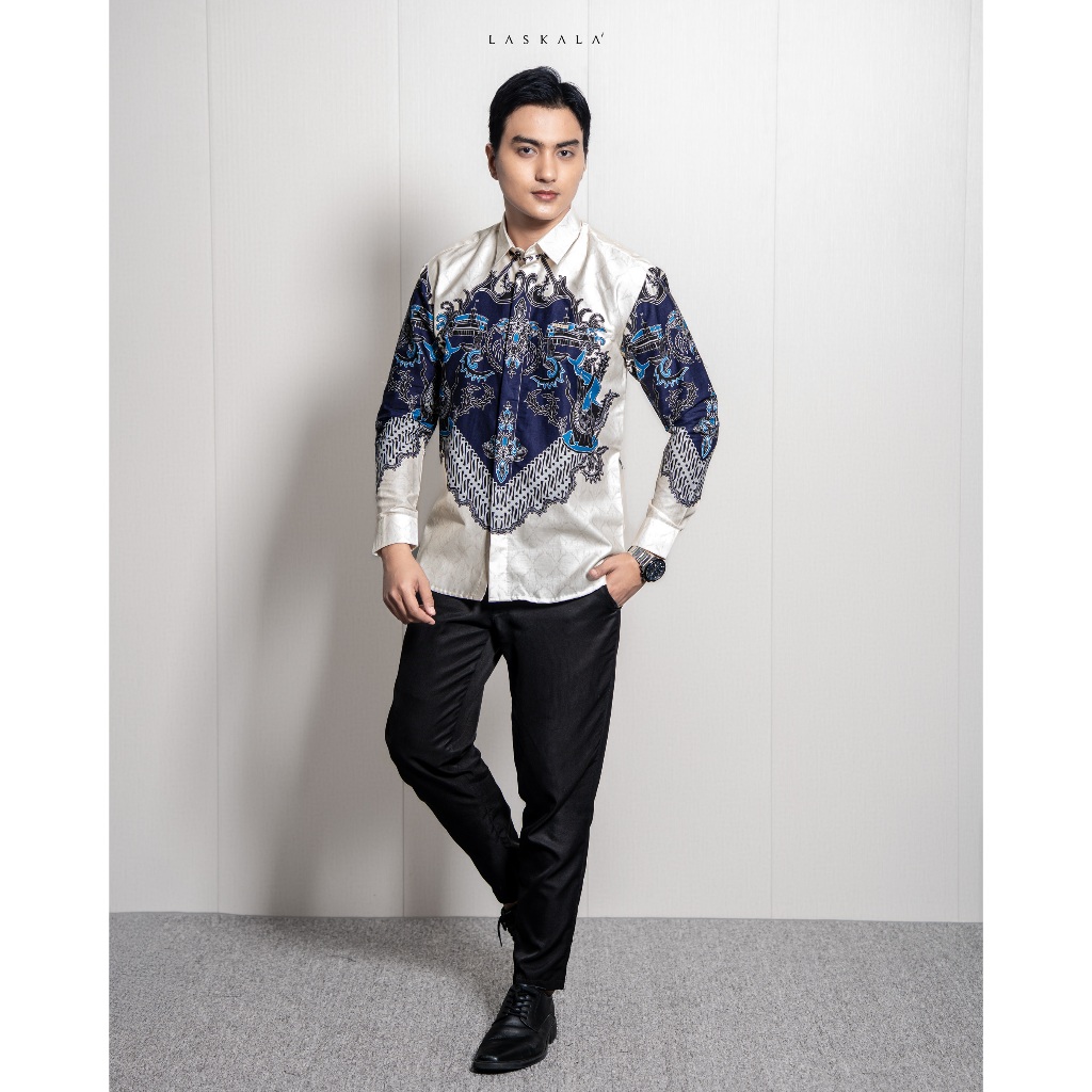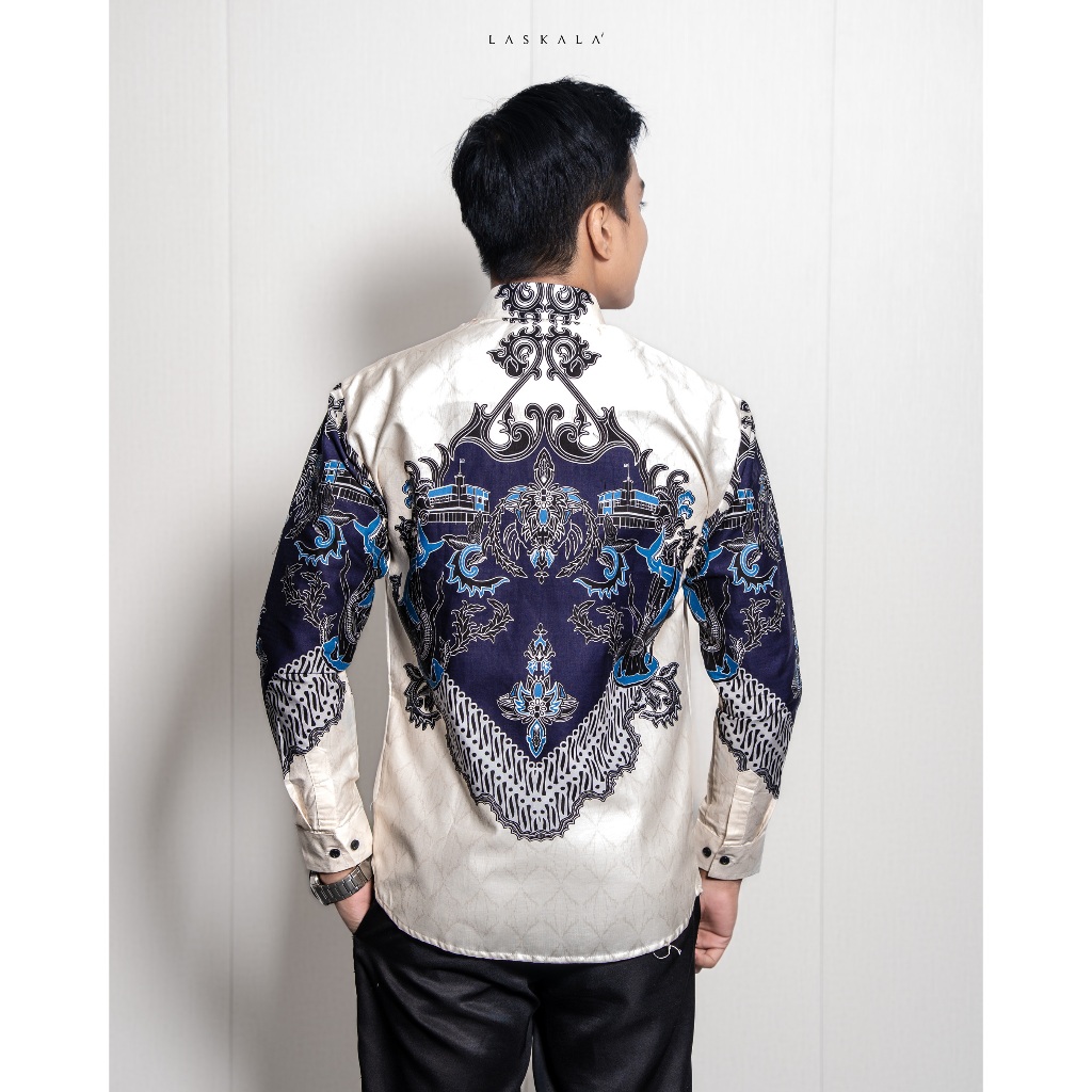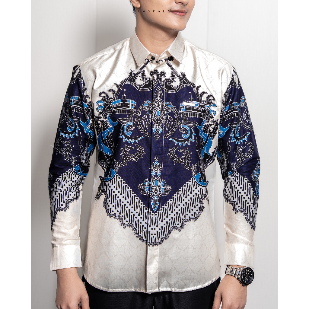 Laskala Batik Premium Surabaya Cream Kemeja Batik Pria Slimfit Lengan Panjang