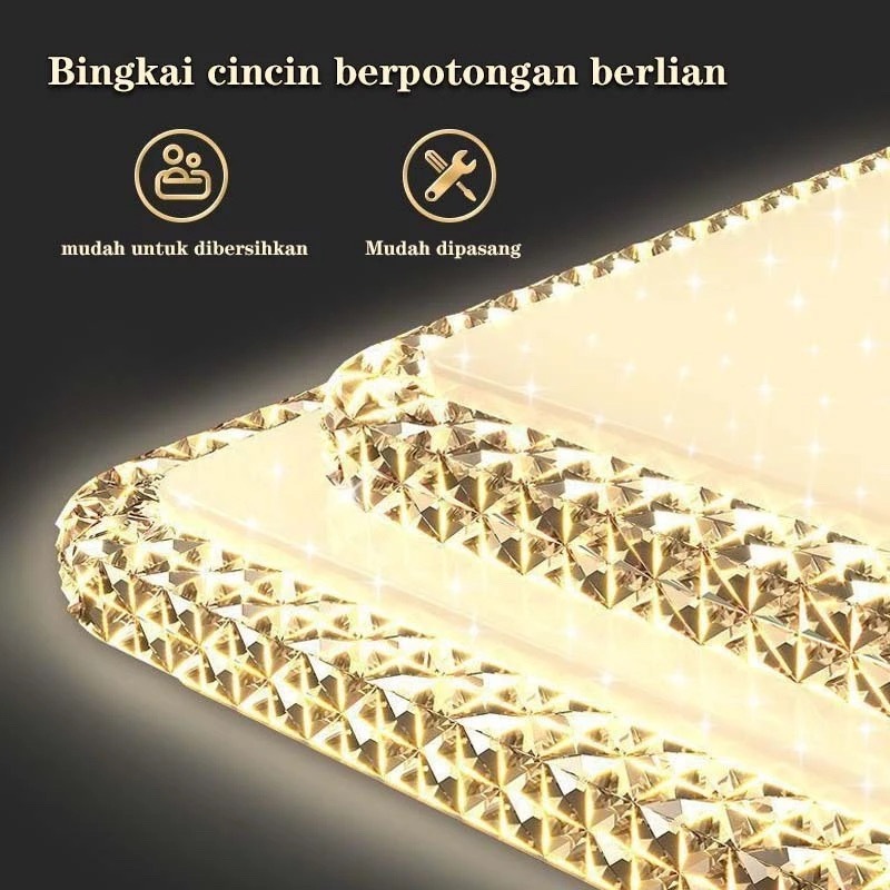Lampu Plafon LED Akrilik Persegi 2 Tingkat 9060cm 3 Warna Remote Control Lampu Hias Ruangan