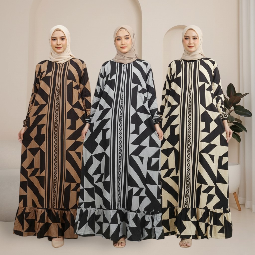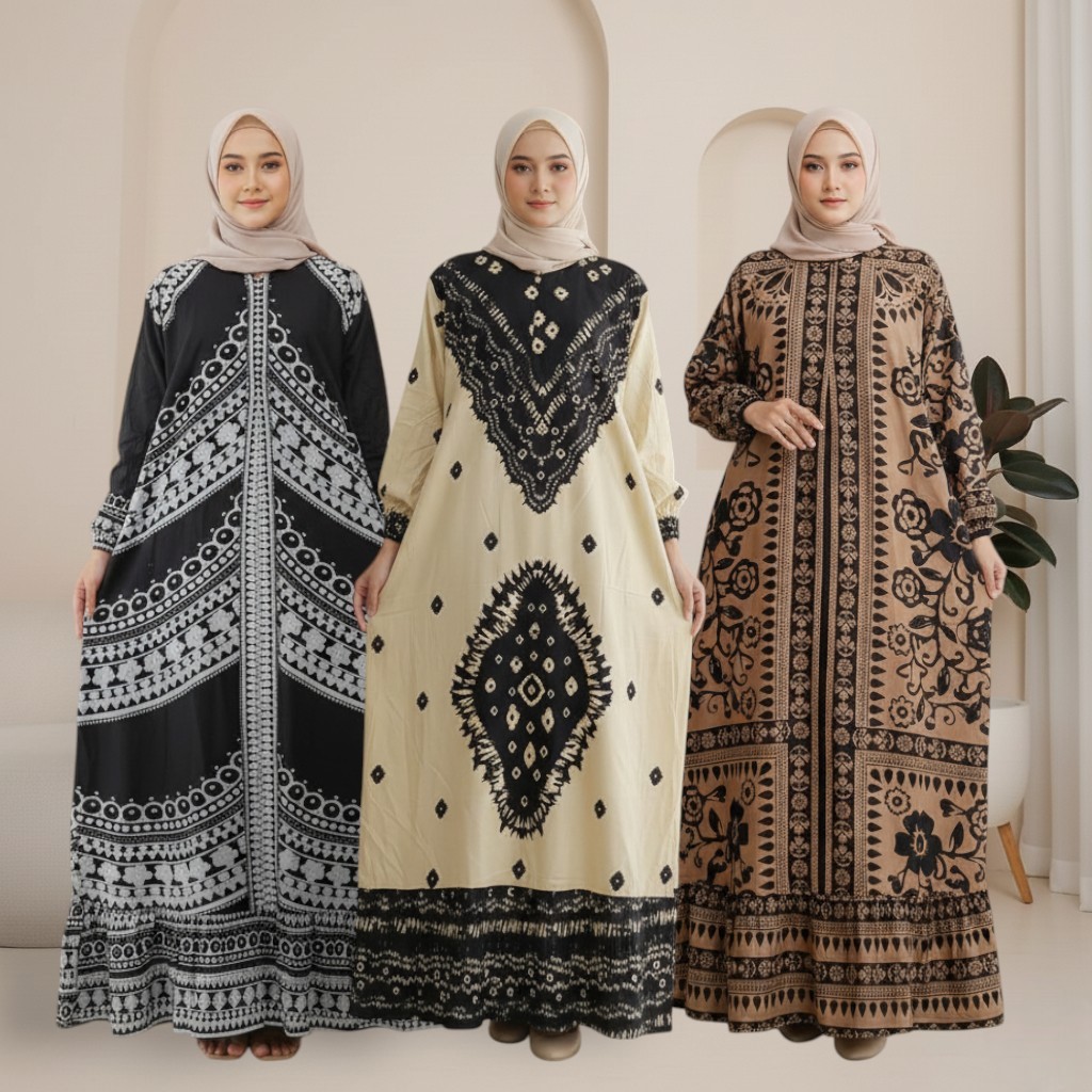 Gamis Batik Wanita Dewasa Muslimah Gamis Panjang Motif Etnik Adem Nyaman Printing Sablon
