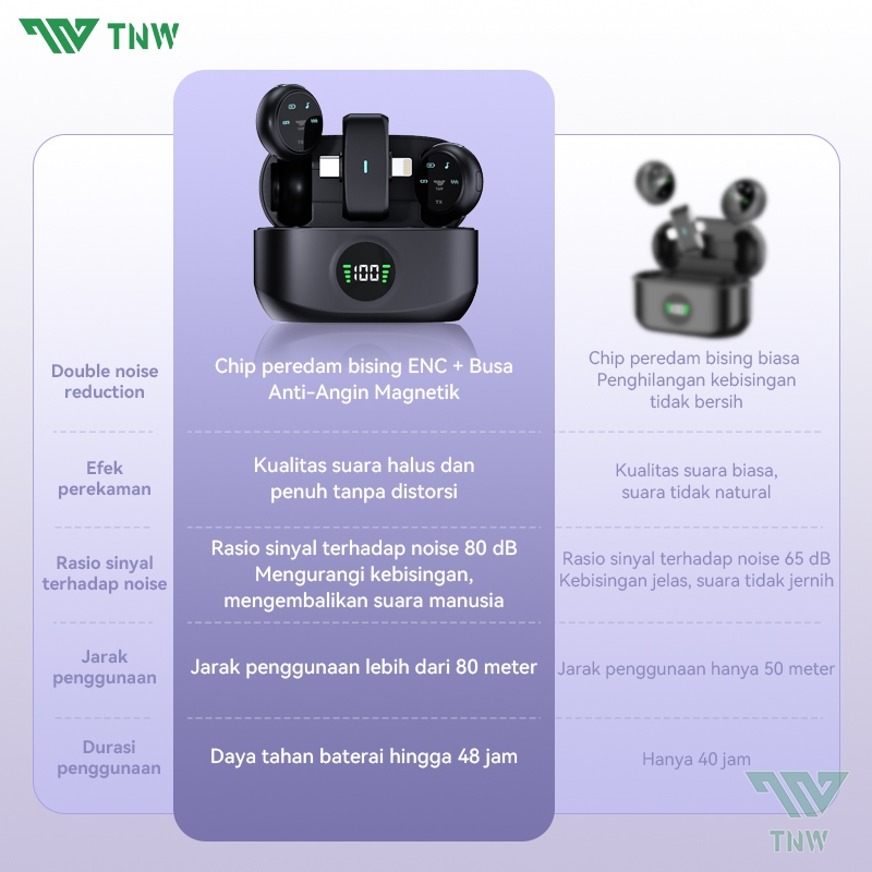 TNW A37 2-In-1 Wireless Microphone Dual Magnetic Lavalier Mikrofon Plug & Play Clip-On Mic With Charging Case for Live Stream Interview YouTube