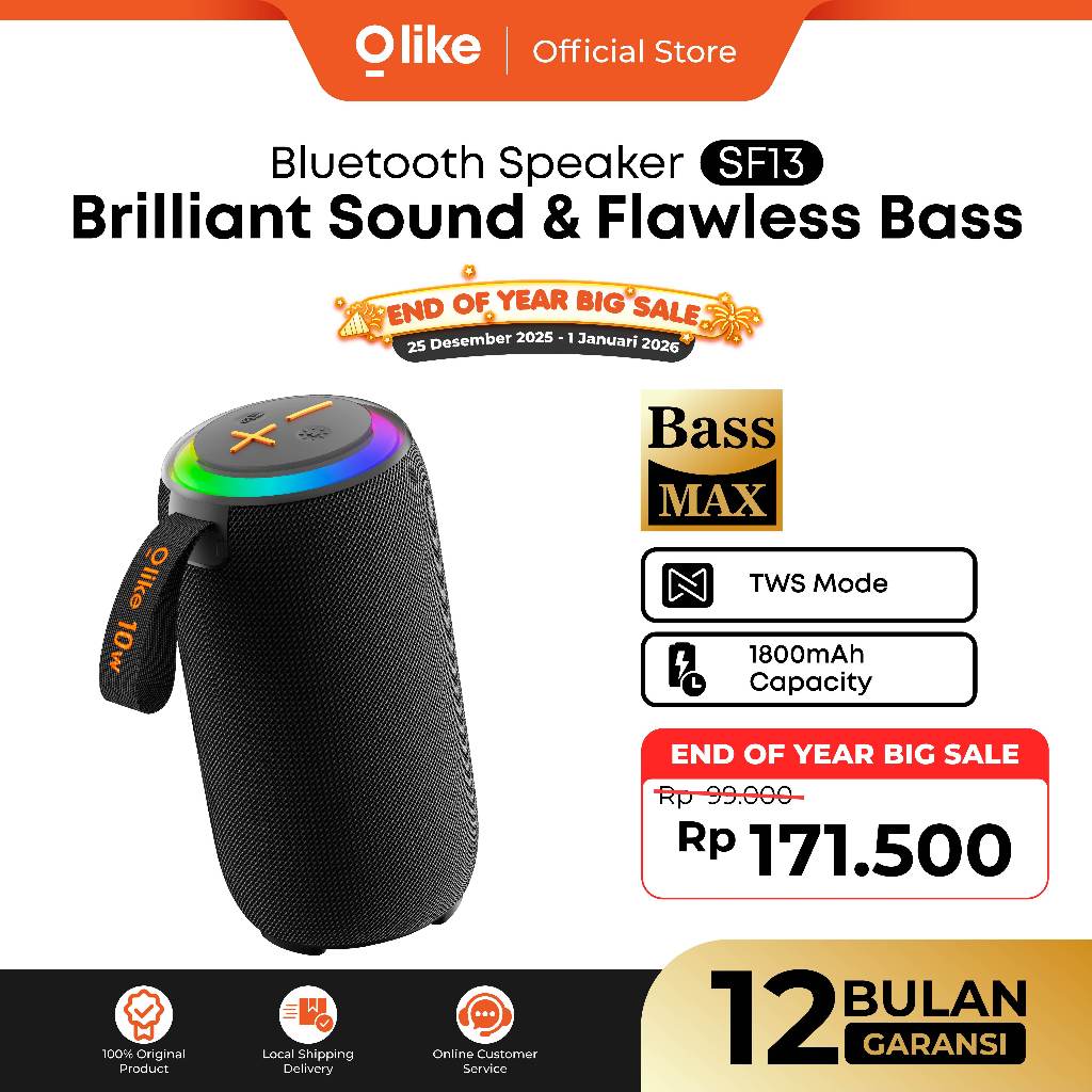 Olike Speaker Bluetooth SF13 Super Bass With 10W Downward Firing Subwoofer TWS Conectivity Support Radio FM RGB Light Effect and Bigger Baterai 1800 mAh Musik Box