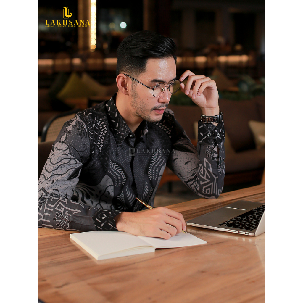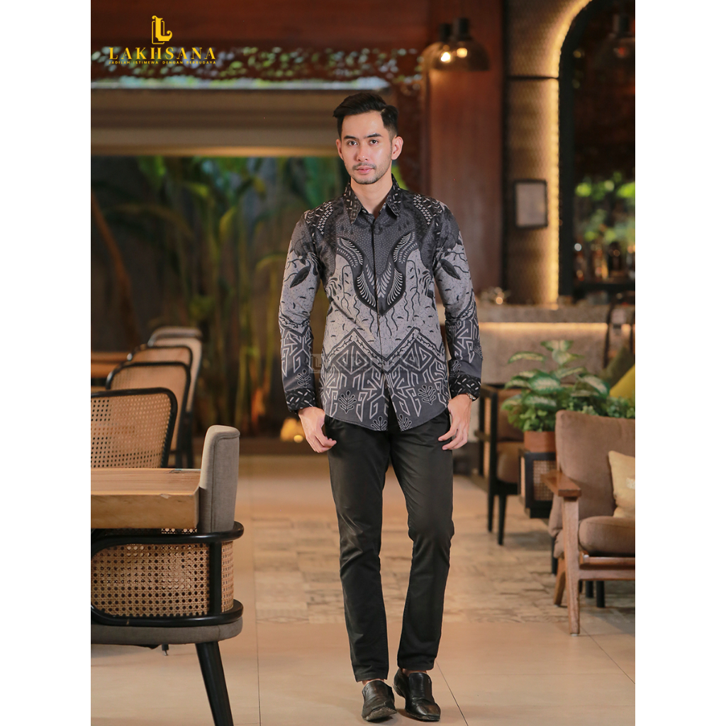 Lakhsana Batik Nirwasita - Kemeja Batik Premium Slimfit Lengan Panjang Bahan Katun Primissima Lapisan Furing Ero Halus L