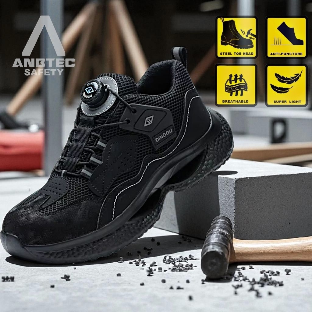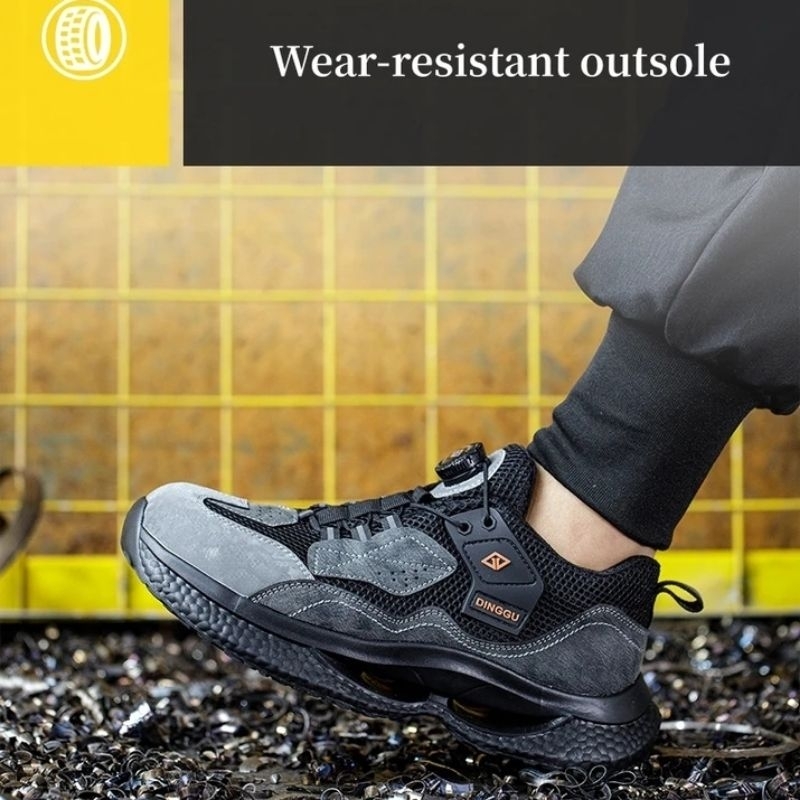 Sepatu Safety Sneaker Tali Putar Original DINGGU 1013 hitam abu proyek outdoor ringan anti slip anti paku
