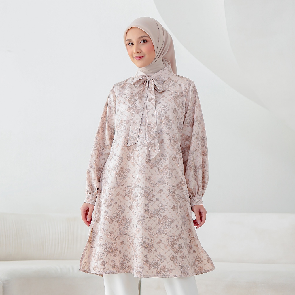 Nibras Hijab X Kalasiris Baju Tunik Atasan Wanita Motif Canbera Silk - Delicate Tunik
