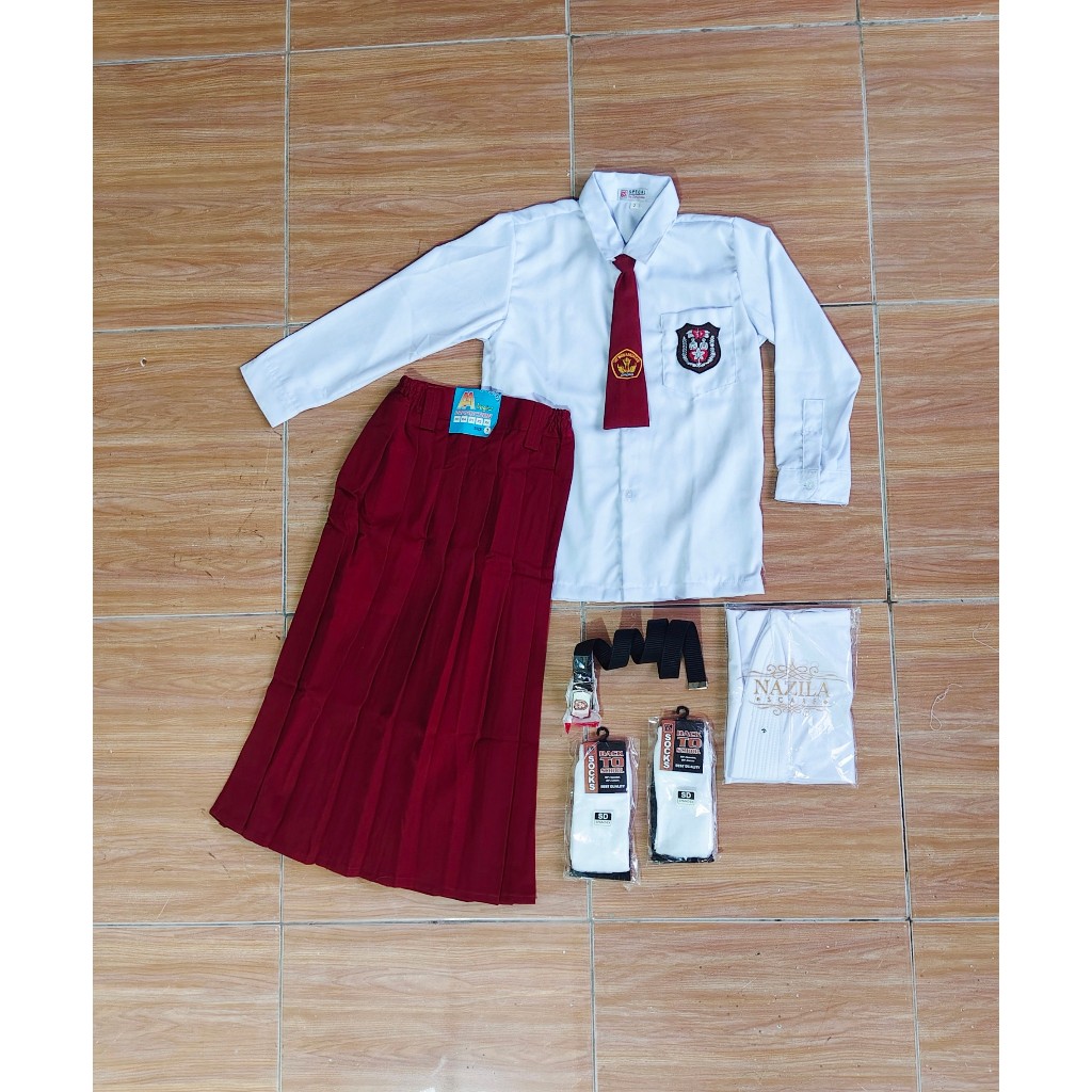 Seragam Merah Putih Sd Panjang Setelan Anak Perempuan Usia 7-12 Tahun Bonus Jilbab Putih Perempuan