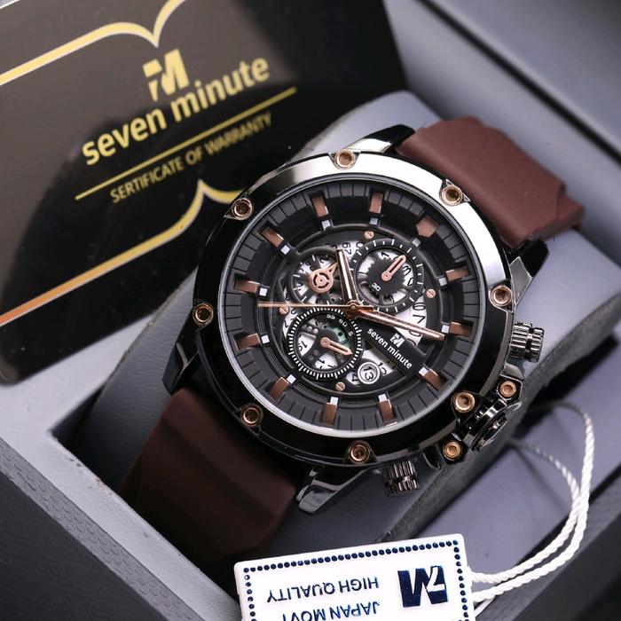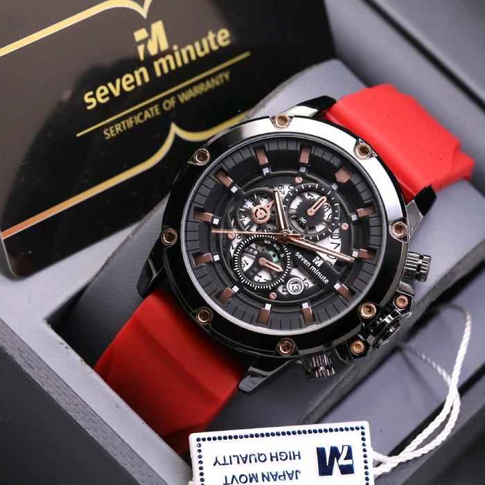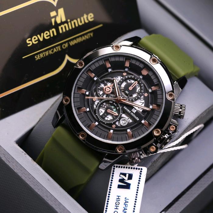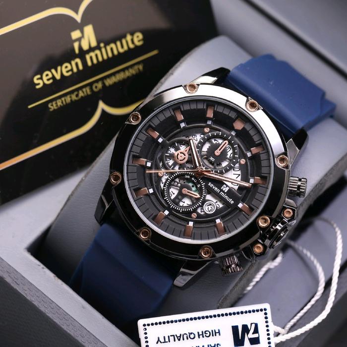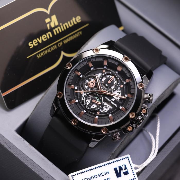JAM TANGAN PRIA SEVEN MINUTE ORIGINAL M730 RUBBER COWOK TAHAN AIR BEST SELLER SPORT ANALOG TRANSPARANT WATCHES - RB-3T-BLACK