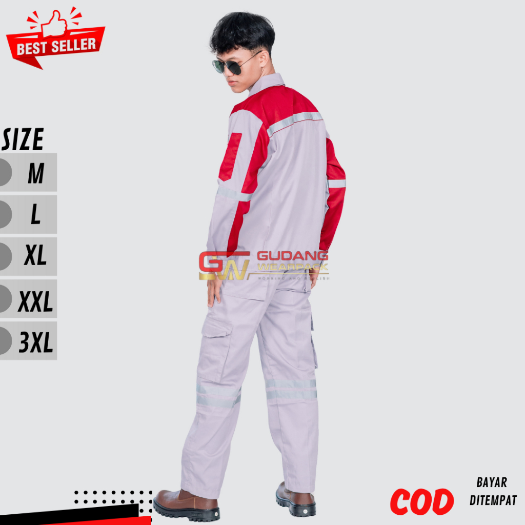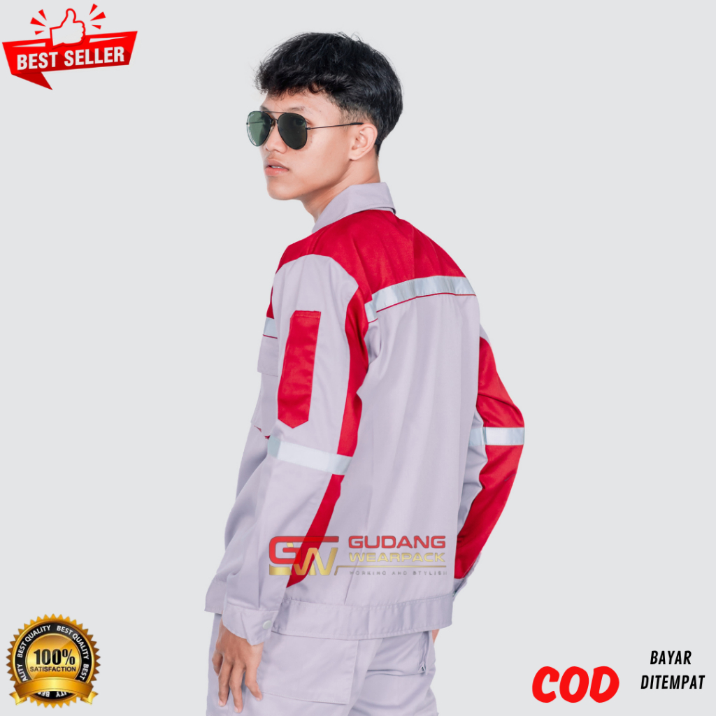 Wearpack Atasan Lengan Panjang Baju Kerja Warna Abu Muda Kombinasi Merah Maroon