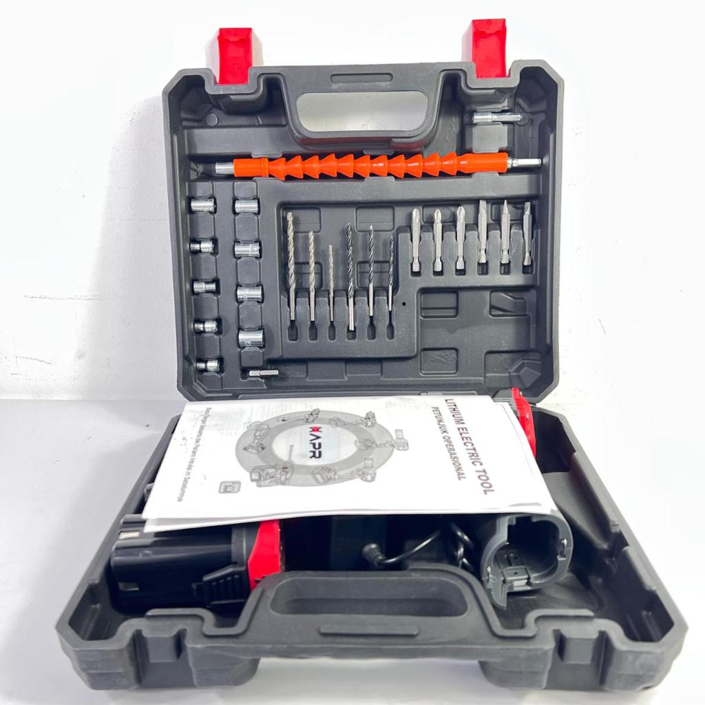 NEW BOR impact drill BRUSHLESS TYPE AP85 pro 10mm keyless auto lock 2baterai mesin bor besi kayu