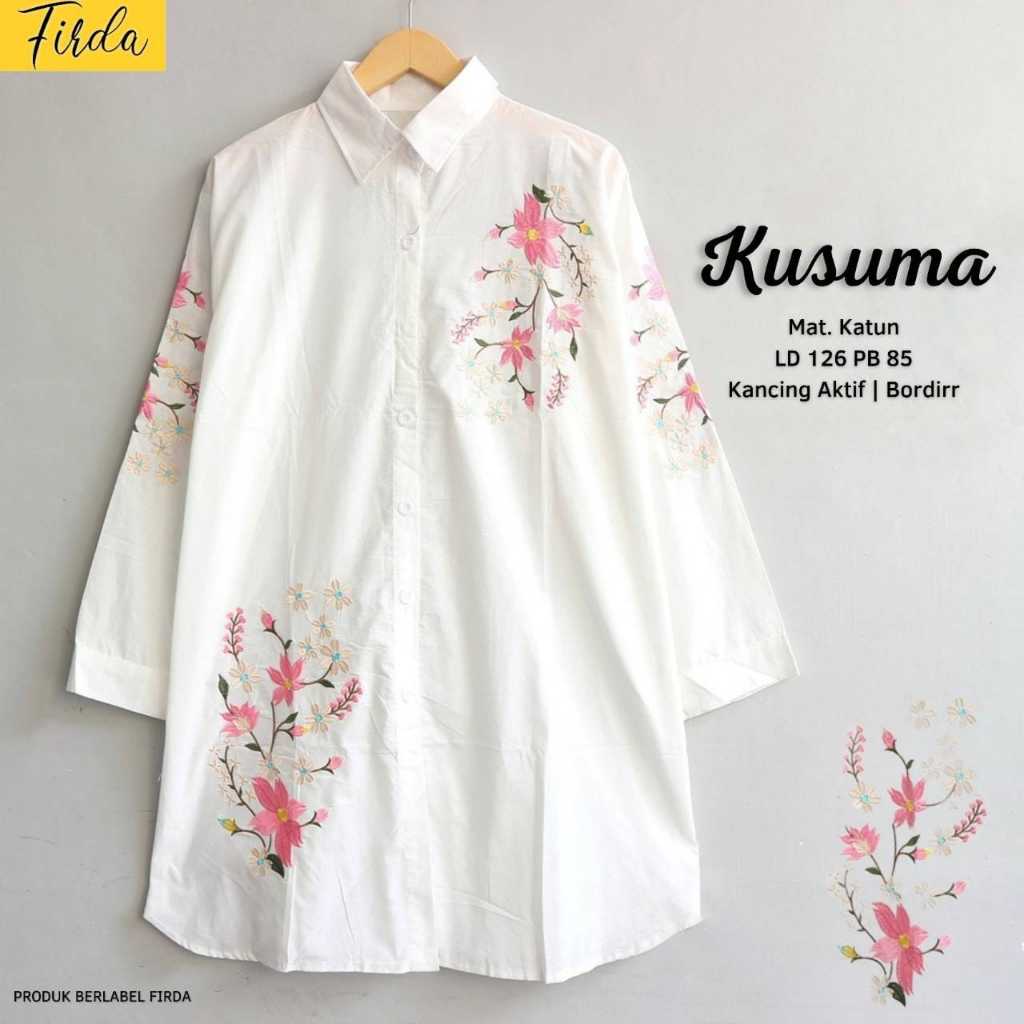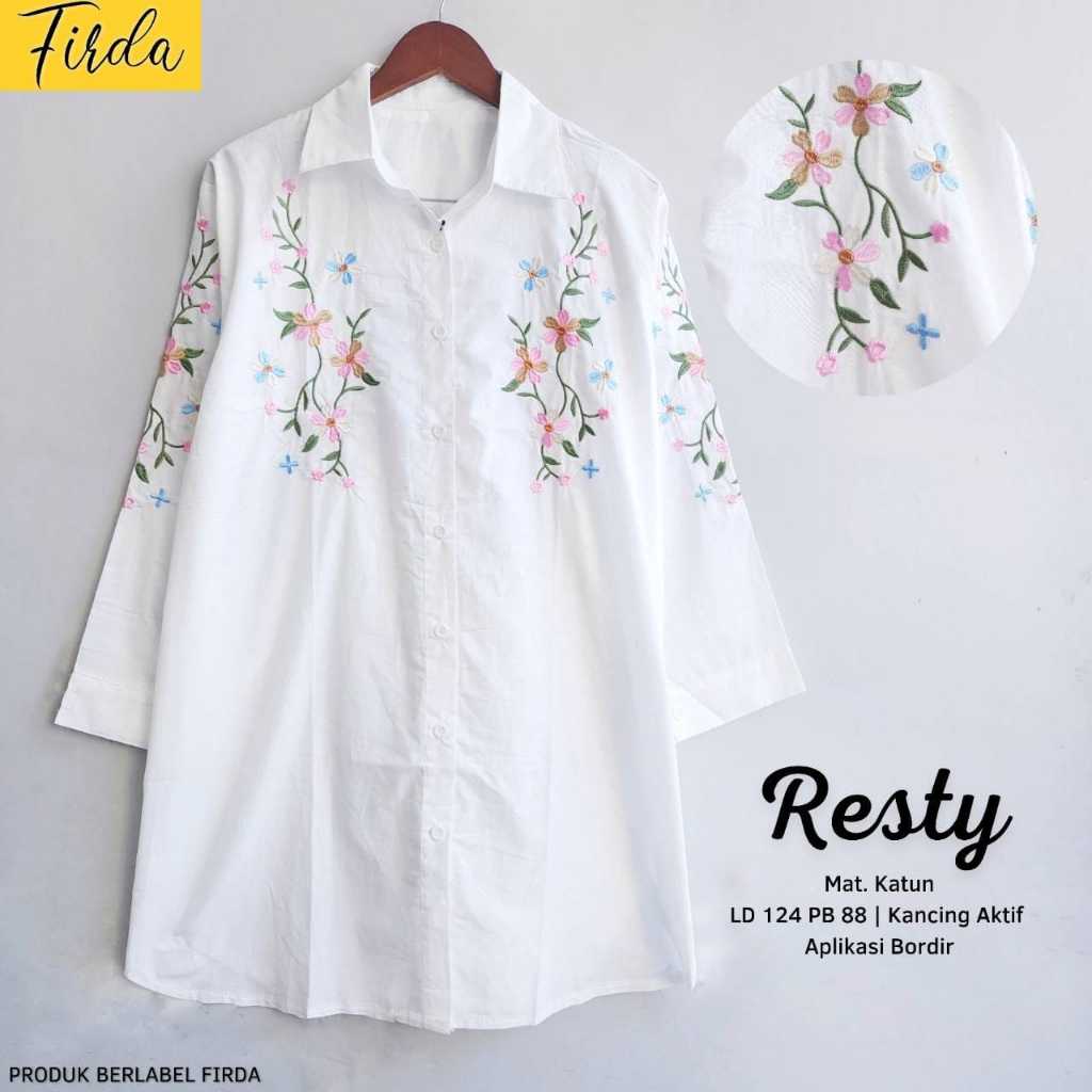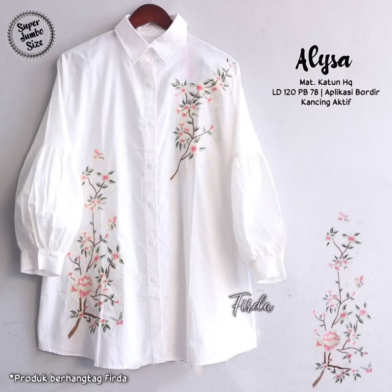 Restock Alysa Jumbo Tunik Kemeja Putih Bordir Bunga Premium Ld 118 Pj 78 Kancing Aktif Bestseller