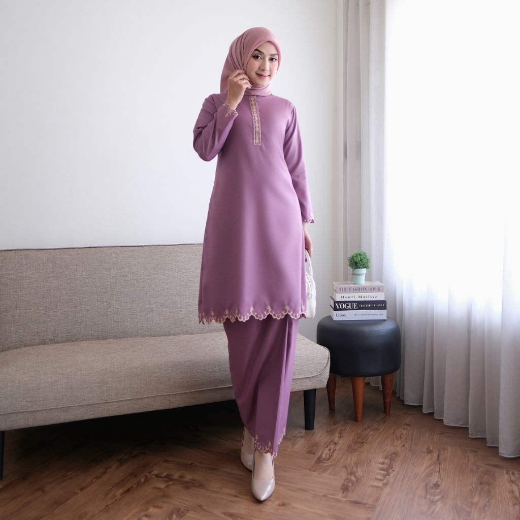 Hanifa Fashion - One Set Melayu Baju Kurung Stelan Rok Bordiran Set Rok Bahan Toyobo Busui