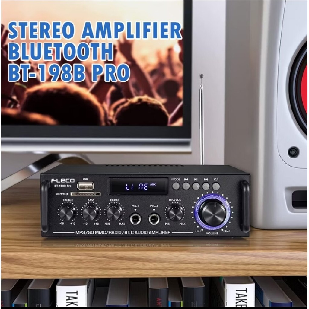BONUS MIC 2 AMPLIFIER DAYA 2000 WATT FULL BASS FLECO BT-198PRO Audio penguat suara FULL BASS & treble AMPLIFIER ORI}