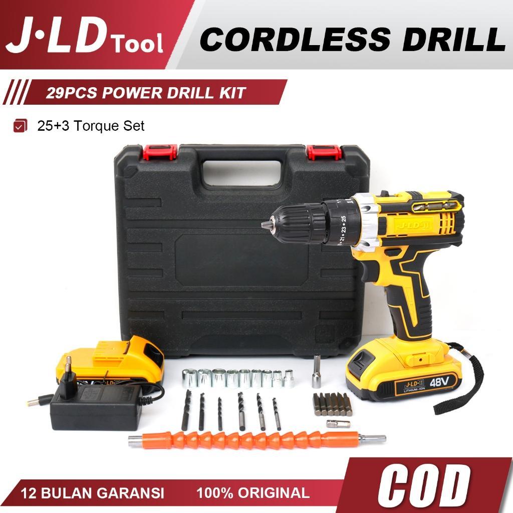 JLD 48Vf Mesin Bor Baterai 2-Speeds Built-in Level Bor Cas jld 2 Bater Case 25+3 Bor Cordless Impact Drill Bor Tangan Bo