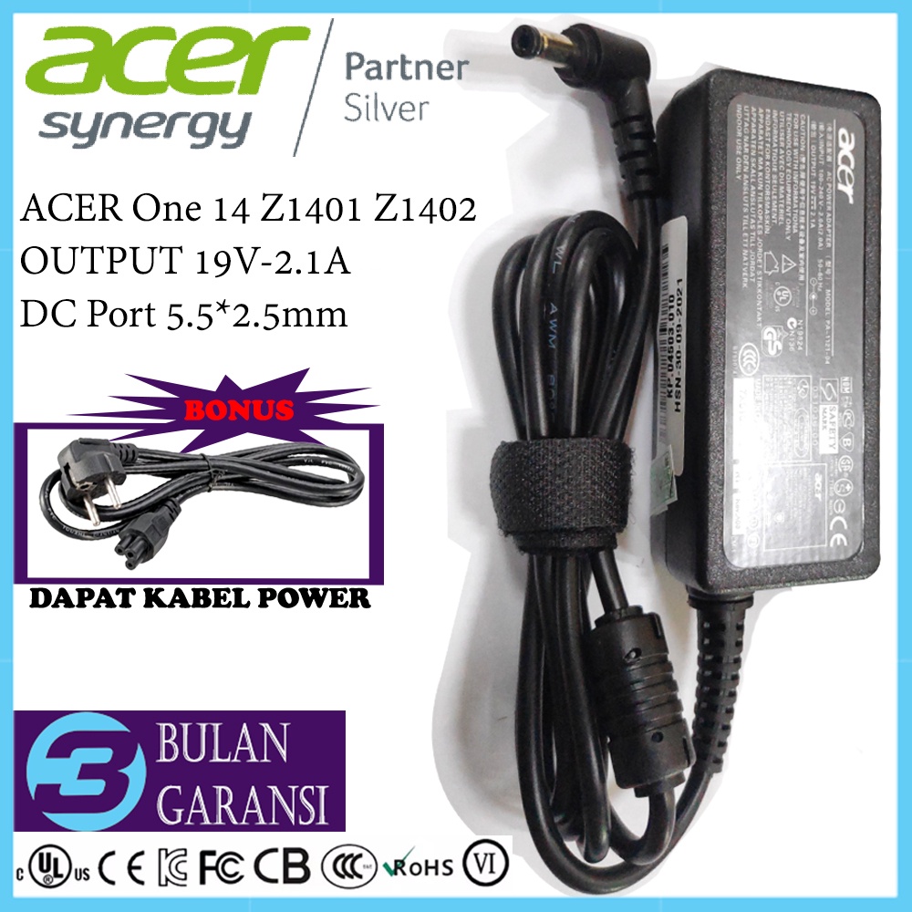 Adaptor Charger Casan Original laptop Acer One 14 Z1401 Z1402 19V 2.1A 40W 5.52.5mm