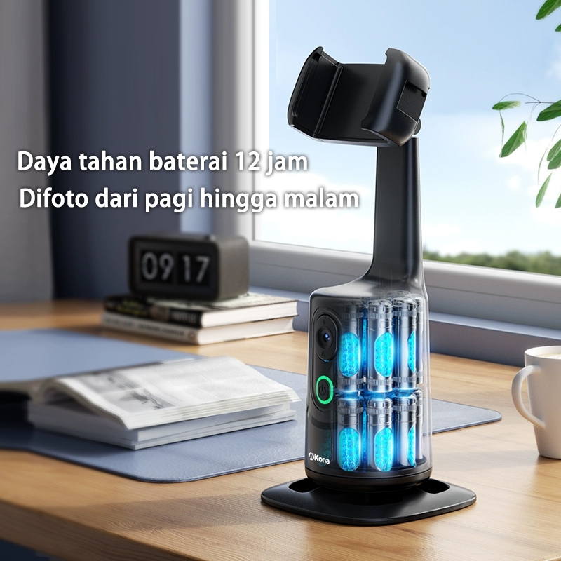 Akona Gimbal Stabilizer Hp 360° Auto Face Tracking For Tripod Handphone Bluetooth Remote Kontrol Isyarat With Lampu Led Konten Kreator Anti Goyang