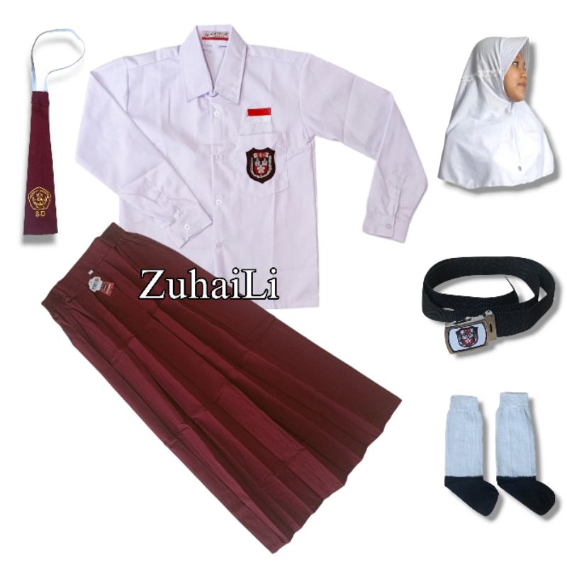 Setelan Seragam Sekolah Sd Merah Putih Baju Lengan Panjang Rok Merah Panjang Kelas 1-6