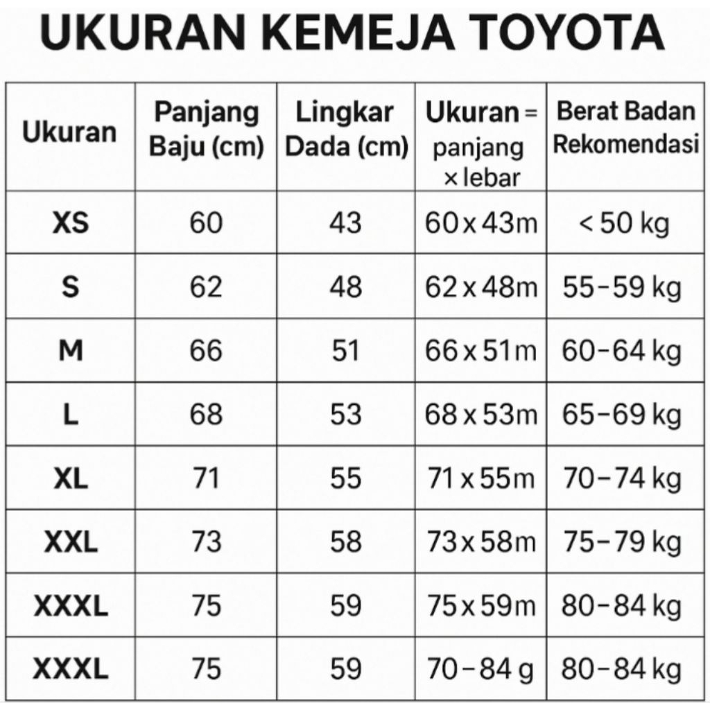 Seragam Marketing Sales TOYOTA Kameja Slimfit Pria dan Wanita Size:XS-3xL L.Panjang dan L.Pendek Kemeja Kerja Sales TOYOTA