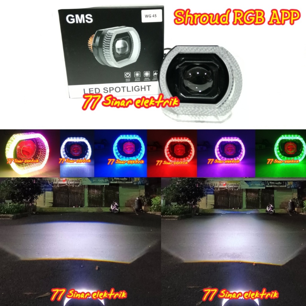 GMS WG45 Billed Matrix 4.5Inch GMS Cahaya Putih Shroud Crystal RGB APP Lampu Tembak Led Biled Projie