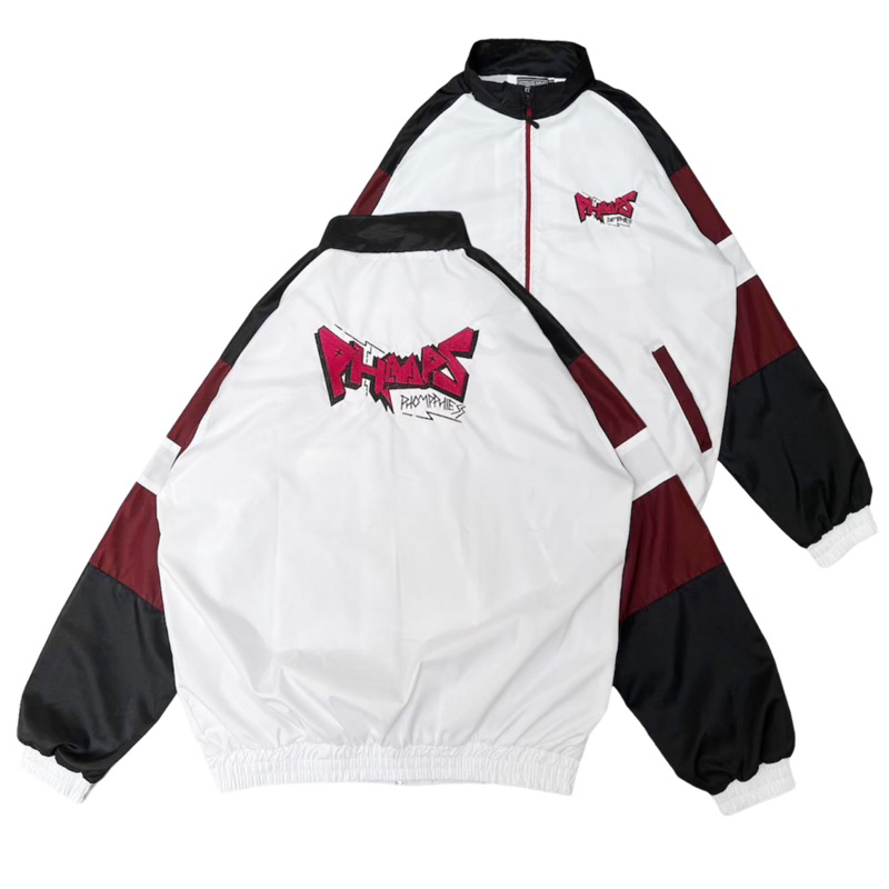 PHOMPPHIESS Jaket Retro Putih Strip Jacket Sport Pria Wanita