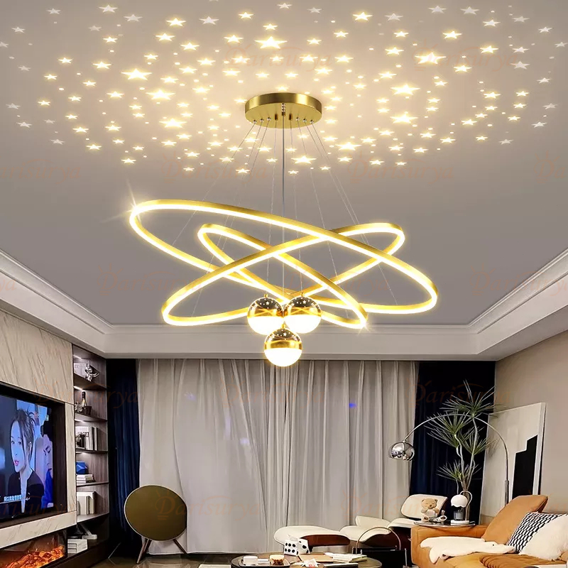 [Ready Stock ]Lampu Hias Lampu Kamar Tidur LED Chandelier Lampu Gantung Langit Berbintang Lampu Kristal Gantung Mewah
