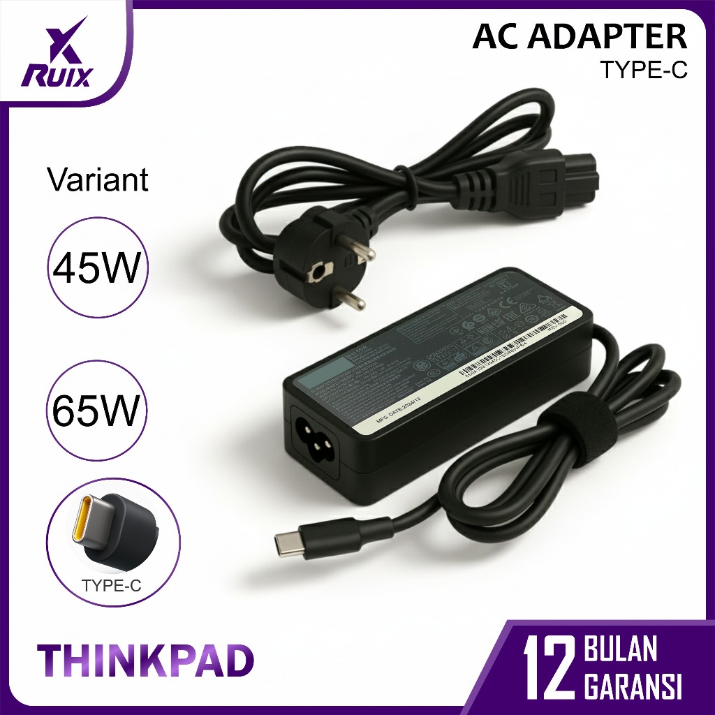 Adaptor Charger Laptop Thinkpad Ideapad Yoga Slim TYPE C 65 45W/65W Free Kabel Power