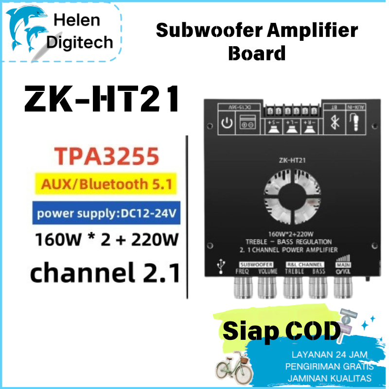 ZK-HT21 Amplifier 2.1 Channel bluetooth Modul Daya Digital Subwoofer Nada Tinggi dan Rendah 160W 2 + 220W