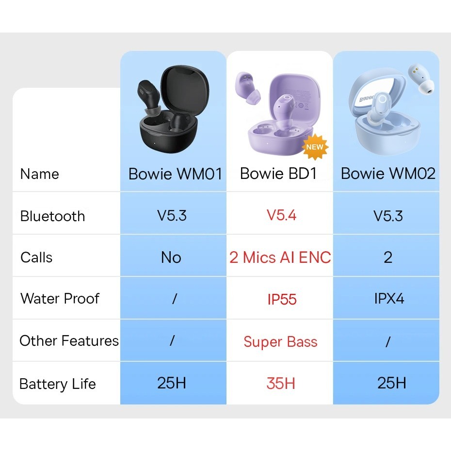 BASEUS TWS Mini Bass BD1 Comfortable Design 35H Playing Time | True Wireless Earbuds Headset Bluetooth 5.4 | Earphone Stereo Bass IPX55