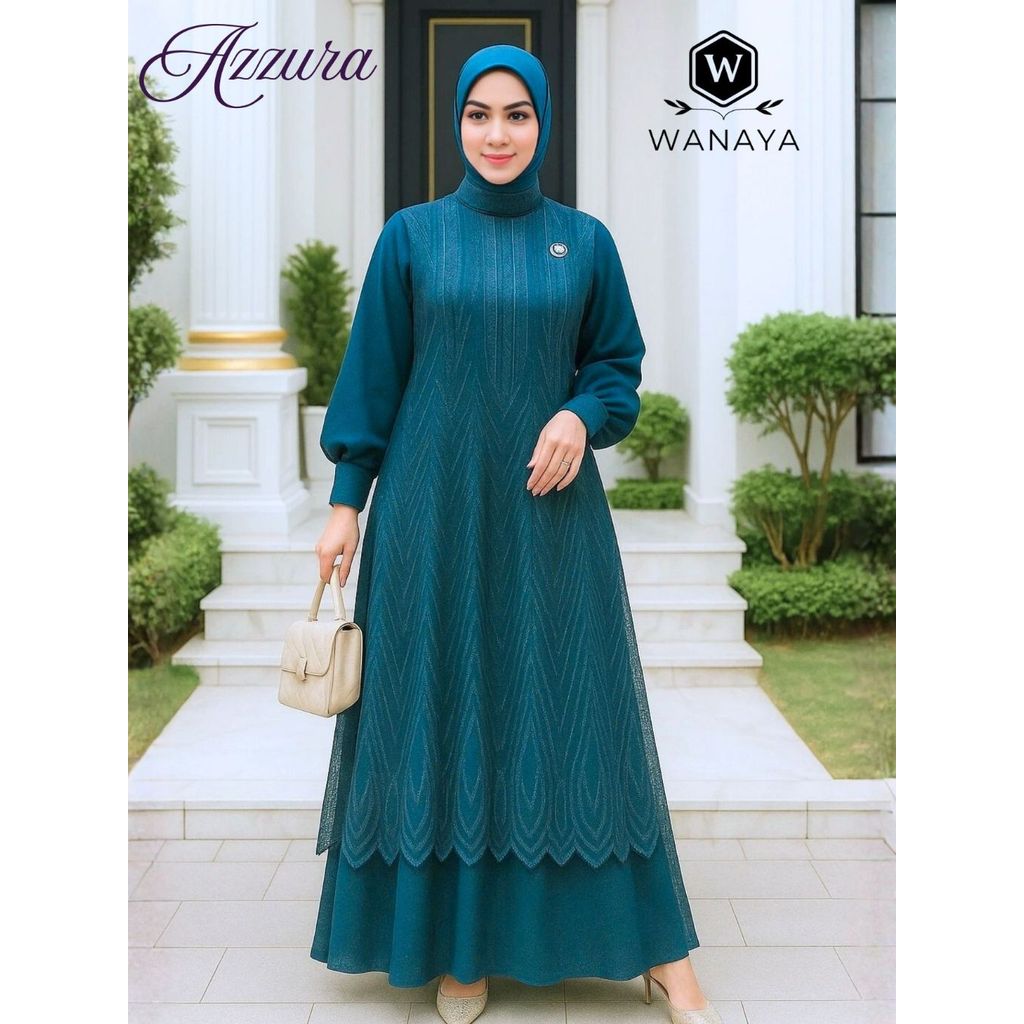 Azzura Gamis Ceruty Babydoll Brukat Tullle Mewah Elegan Dress Muslimah Model Terbaru Pesta Kondangan