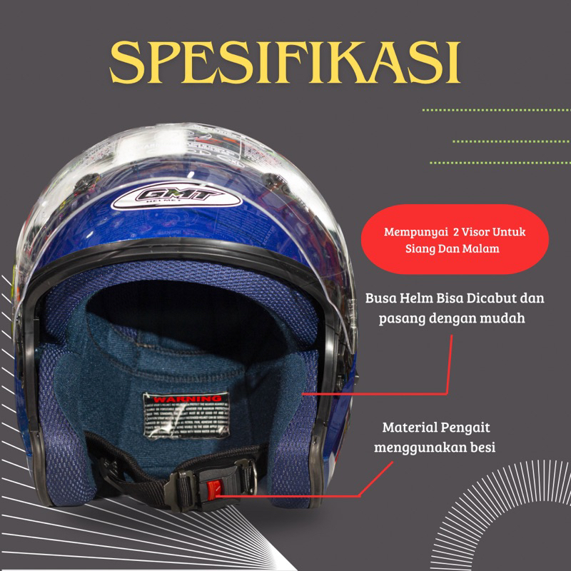 Helm Half Face GMT Original Double Visor Helem Motor SNI Murah Helmet Pria Wanita Dewasa
